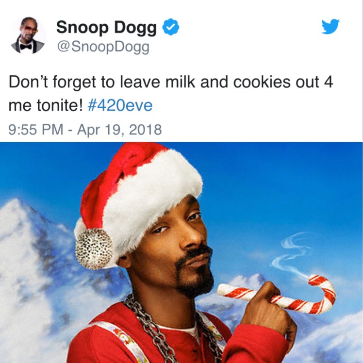 I couldn’t help but smile when I saw people posting about how you needed to leave the rapper and known marijuana smoker Snoop Dogg milk 🥛 and cookies 🍪 like he is the Santa Claus 🎅🏻 of 4/20.