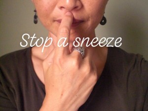 To stop a sneeze when you feel it coming on, hold your index finger under your nose and apply steady pressure until you feel the urge to sneeze subside. This one is all about timing. There are times when this won’t work because you didn’t do it in time. However, when you get the timing right it works!