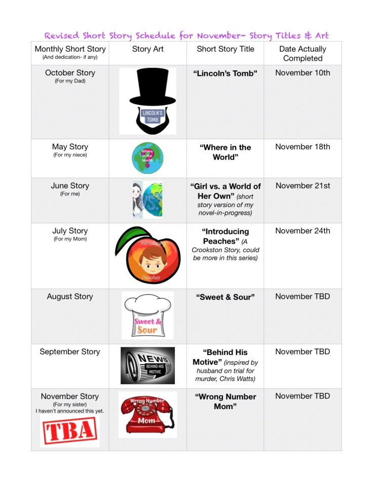 I promised last post to update you on what stories are getting done when. Because even though I was behind on the actual writing and finishing of short stories, I had all the ideas 💡 developed and a nice start on a lot of them. I had also been announcing stories each month but wasn’t finishing them.