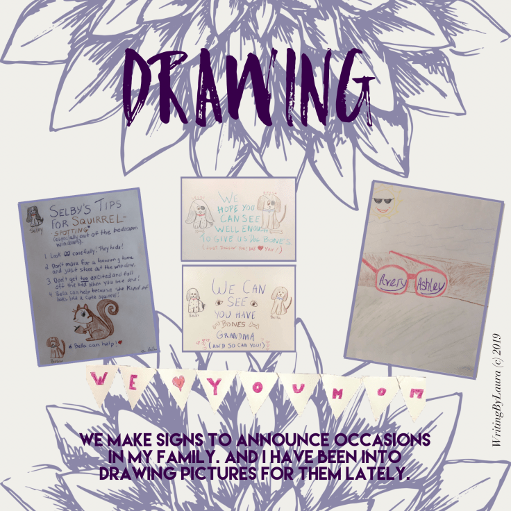The short hashtag answer for what do I do when I don’t want to write creatively but I still want to create: #amcreating. Since my severe Traumatic Brain Injury (TBI), I’ve been more creative. I’ve always been a creative person, but the TBI rebooted my brain and took out the viruses/glitches of self-doubt and self-sabotage and replaced those viruses with new creativity programs. (Do you like my 💻metaphor?) I’ve started to really enjoy drawing (cartoonish and cutesy, not high art), crafting, photography and graphic design. I also want to start trying my hand at painting.
