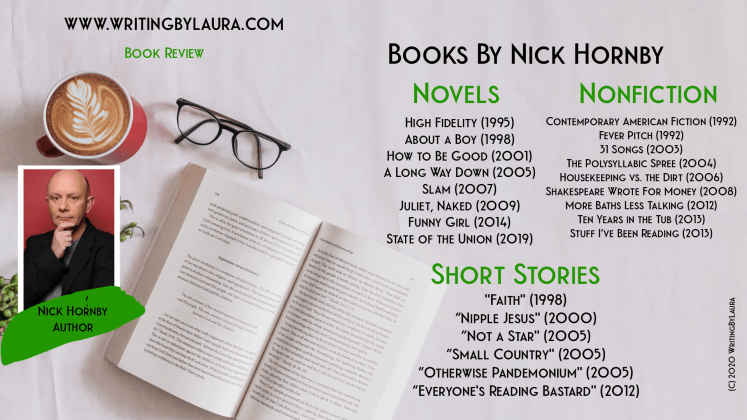 This book certainly cleansed my palate and left me thinking I should make a point to read ALL of Nick Hornby’s books. So of course I made a graphic with his book titles so I have something visual to turn to next time I want to choose a book by Nick Hornby. I didn’t list his screenwriting work, etc.