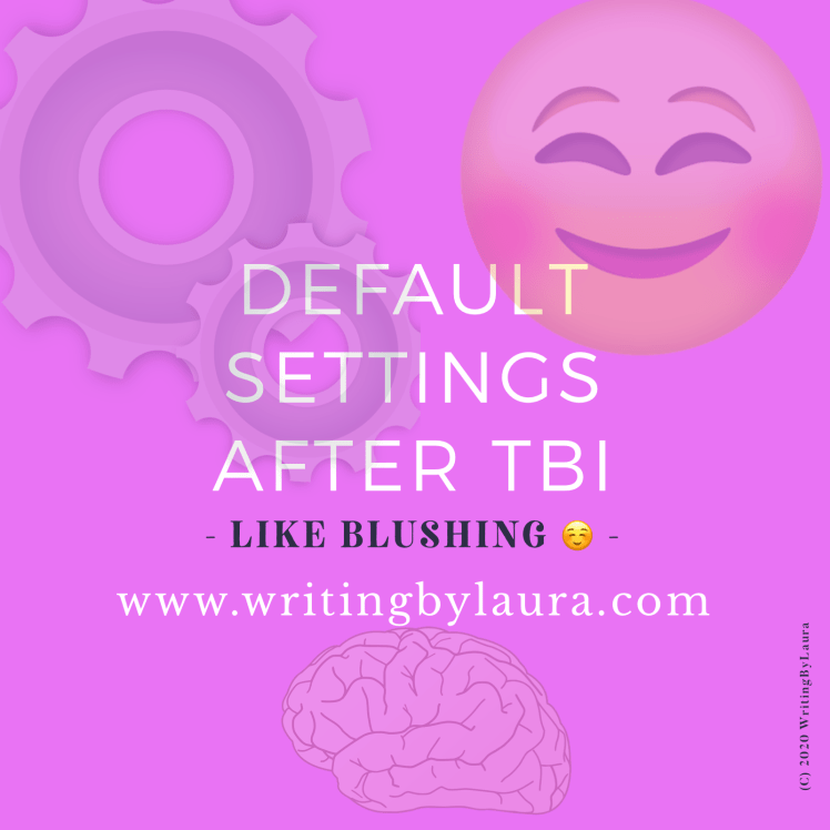 Before my severe Traumatic Brain Injury (TBI) and coma changed a lot of my core personality characteristics I was shy ☺️. I would blush easily, have a hard time talking in groups and to strangers and would struggle giving eye contact. I worked on it and as I got older I could work through some of these “shy instincts” but some were harder to bypass. One of the “shy instincts” that was impossible to bypass was blushing ☺️. However, after the severe TBI that rendered me in a coma for three weeks and completely altered many things about me permanently (check out this page I created with pertinent blog posts on my condition), I was no longer “Shy Laura.” I’m more apt to speak my mind and don’t get shy speaking to strangers or in large groups (just ask my Brain Injury Support Group… I’m down right boisterous). Yet, a recent experience has made me realize that even though the TBI changed me from a shy person to a more outgoing one it didn’t completely override some of my shy characteristics (specifically blushing). I still blush like “Shy Laura” and for that I’m using a computer analogy to say that there are still some “Default Settings” that come into play.