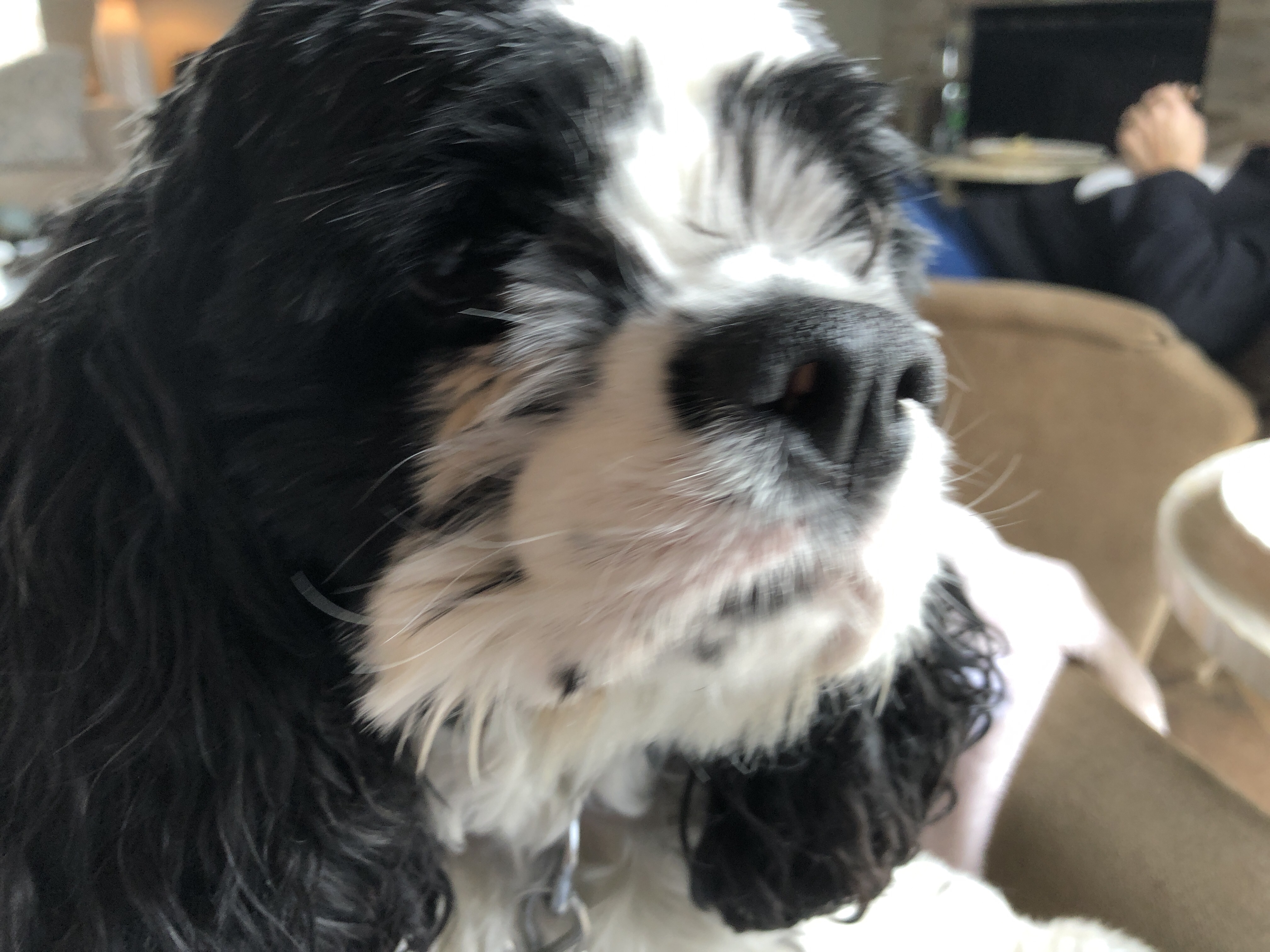 Selby had a haircut postponed because of COVID-19. So she has a very furry face! She will be getting a haircut the day AFTER her birthday! I tried to get a good close up of her furry face!