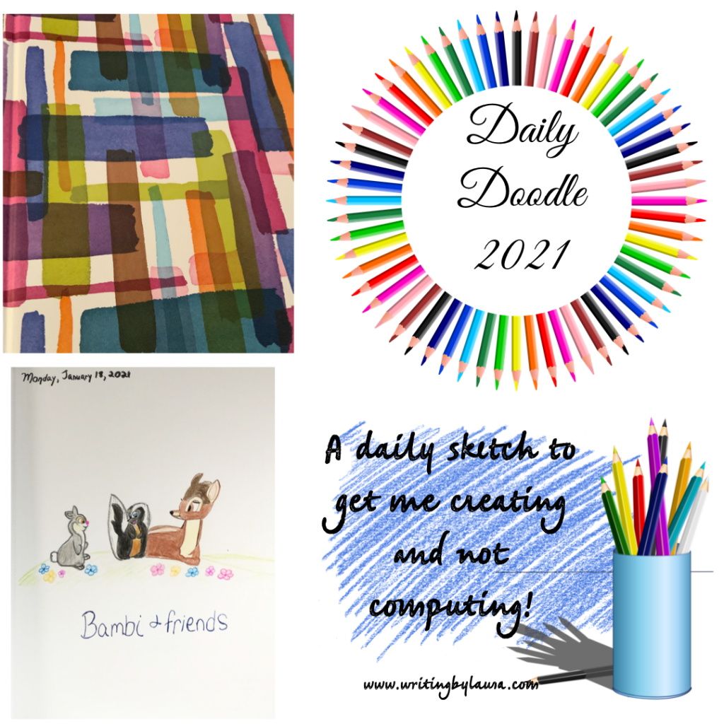 Truthfully I didn’t go completely non-digital (not sure how I would blog if that were the case). But I reduced my daily time on the computer, iPad, iPhone, and the Amazon Fire tablet. I switched from spending A LOT of time on devices to spending time doing things that aren’t digital. I mainly spent time on a new project that I am calling the “Daily Doodle.” I am drawing a picture every day in this neat journal I found when I was cleaning/decluttering. So far it’s really helping my brain decompress and get unclogged from the digital. Here’s an idea of what it looks like.