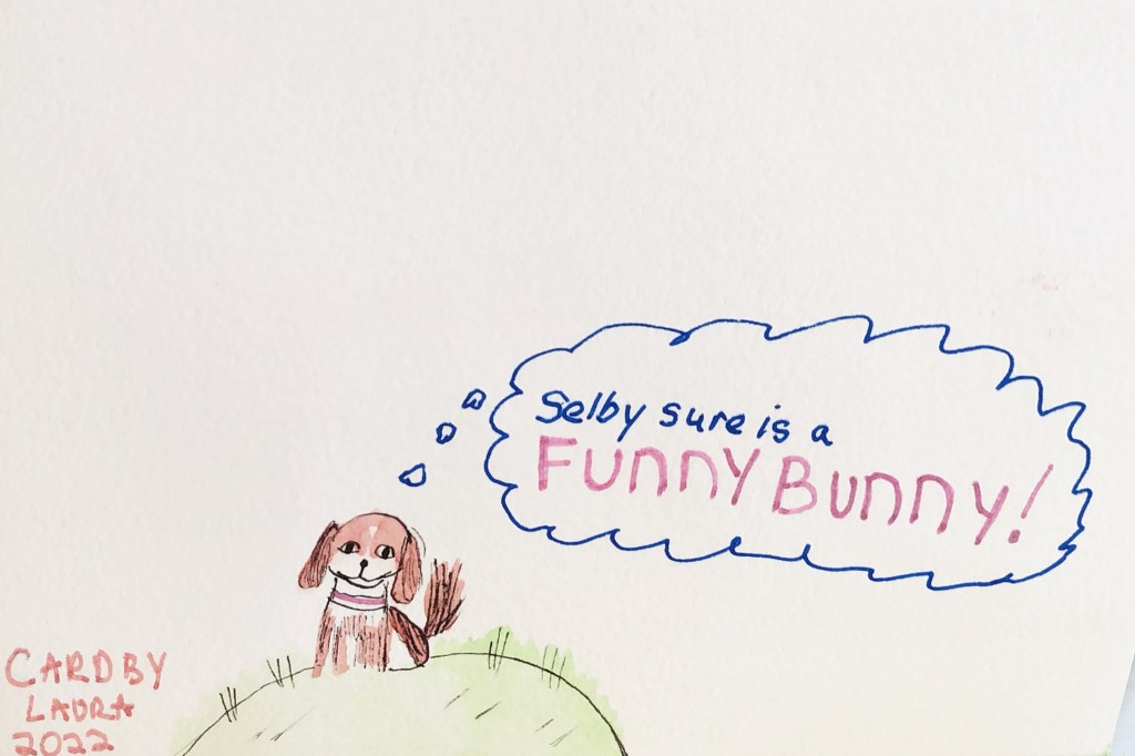 Inside of card: A bunny pun as delivered by Selby!
