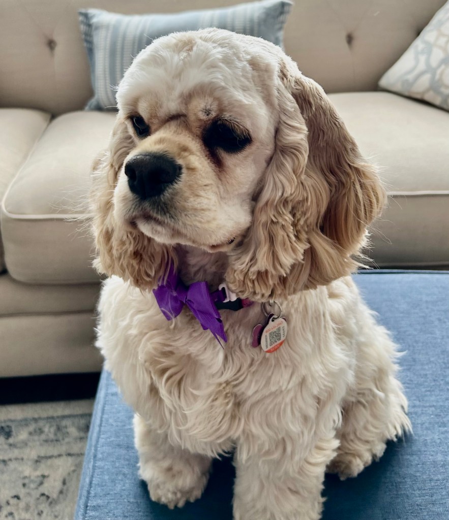 She was 10 months on March 6th. She is a spicy little pup who loves to play and bark and looks like Lady from Lady and the Tramp with this haircut!